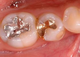 当時からコンポジットレジン《歯科用合成樹脂(いわゆる白い詰め物)》はありましたが、物性は今とは比べものにならないほど低くあまり活用されていませんでした。ですので、当時は金属の詰め物をするのが一般的な治療だったんですね。